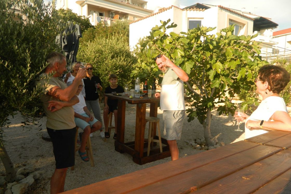 Die Aktivität basiert auf einer Weinparty, aber Gäste können auch ihre eigenen Getränke und Snacks mitbringen. Diese Veranstaltung findet vor unserem Apartements Duda Haus unserem olive garden (Garten des Dionysos) , einem großen Olivengarten, statt und wird die ganze Zeit über von Rockmusik oder elektronischer Musik begleitet