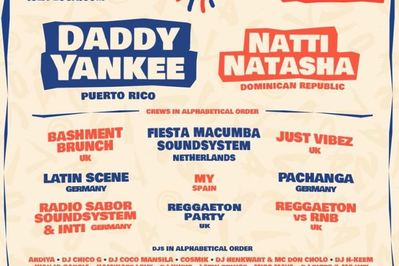 LINE UP: Daddy Yankee, Natti Natasha, Ardiya, DJ Chico G, DJ Coco Mansila, Cosmik, DJ Henkwart, MC Don Cholo, DJ H-Keem, Juanjo Garcia, Kamikaze Love, DJ Khriz, Latin Prince, Miss Maya, DJ Pisto & MC Inti, DJ QT, Sai, SJ Sami, Sevi Sanchez, Tori Segura, DJ Toxxic, MC Trinigladiata & MC Burd, Yas Cepeda, Yenny