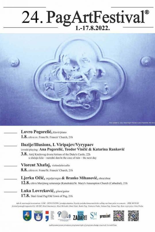 17. 8. PagArtFestival predstavlja mladog glazbenika: Luka Lovreković, gitara M. Giuliani, M. M. Ponce, K. Klarić, J. Rodrigo, A. Ginastera, F. Tárrega koncert u Starom Gradu Pagu u 21h