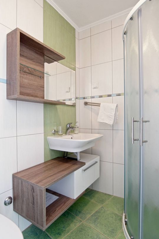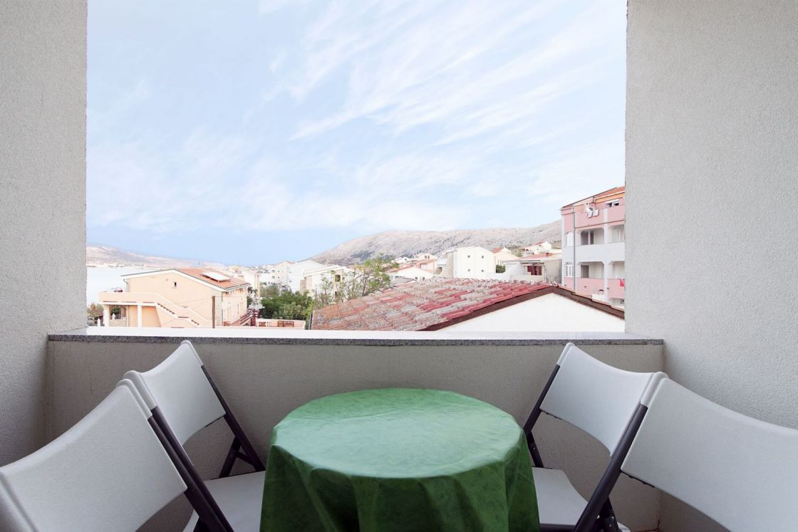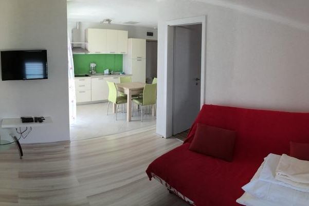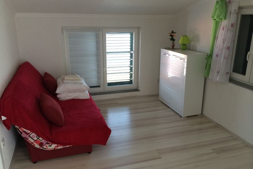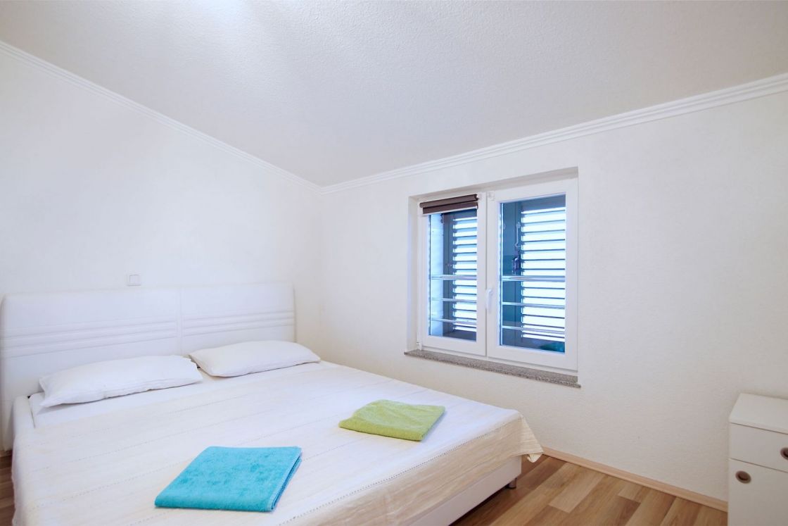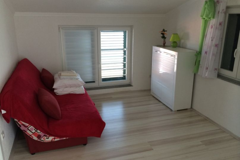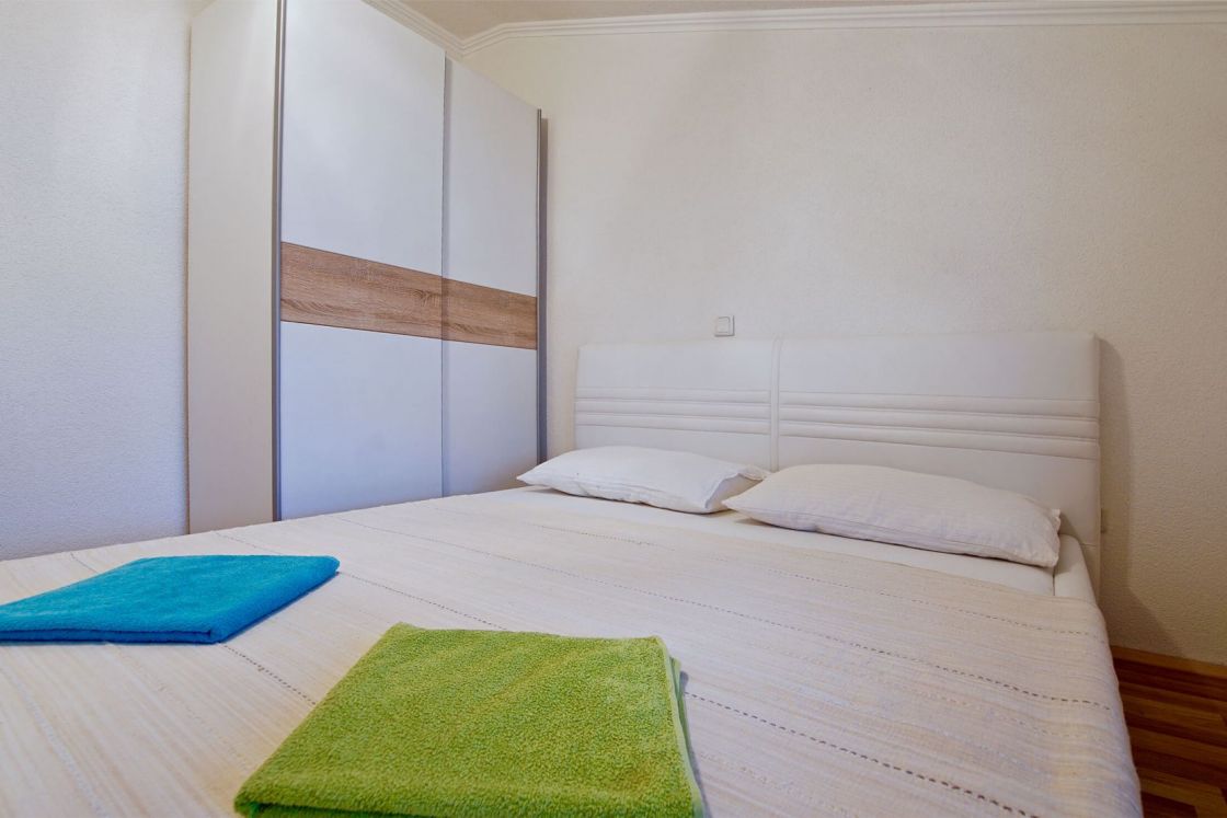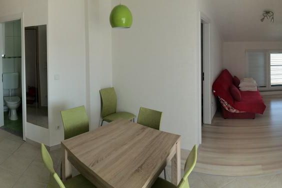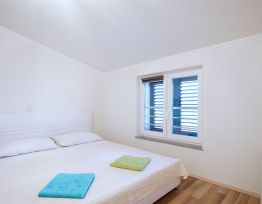 Wohnung 7 (2 + 2): Dies ist eine Wohnung für 4 Personen und befindet sich im zweiten Stock. Es verfügt über 1 Schlafzimmer mit Doppelbett, eine Wohnküche mit einem ausziehbaren Schlafsofa für 2 Personen. Es gibt auch ein Badezimmer mit Dusche und eine schöne kleine Terrasse mit Meerblick.