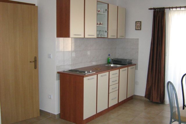 Terrasse Meerblick Küche Kühlschrank Geschirr und Besteck