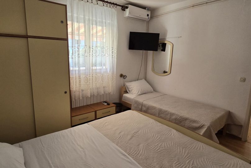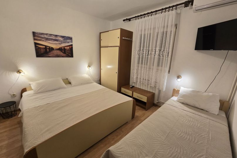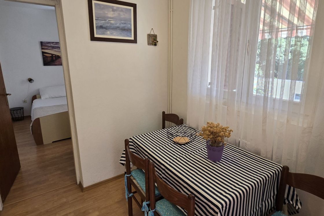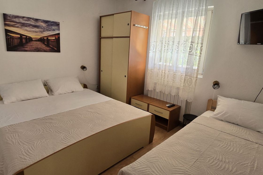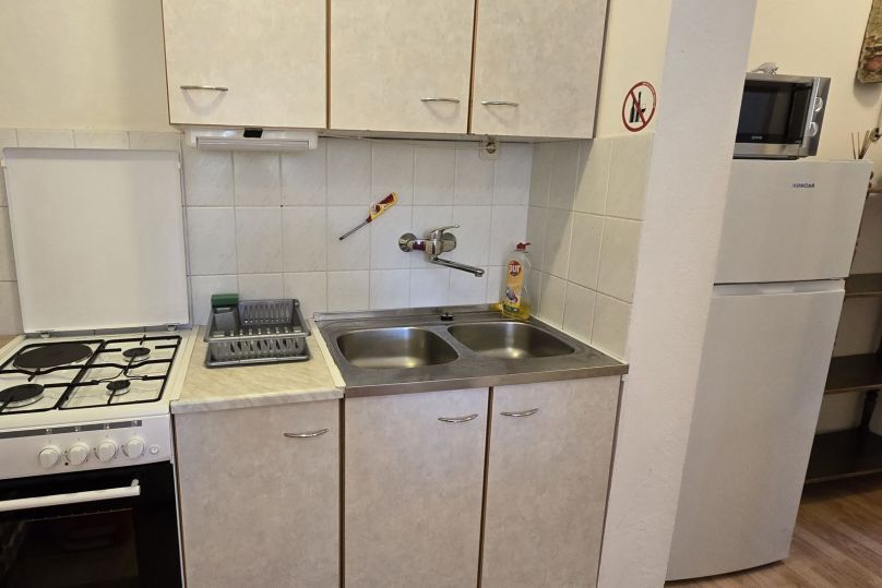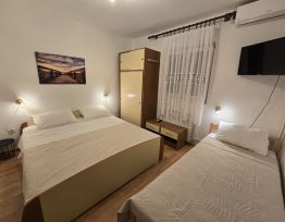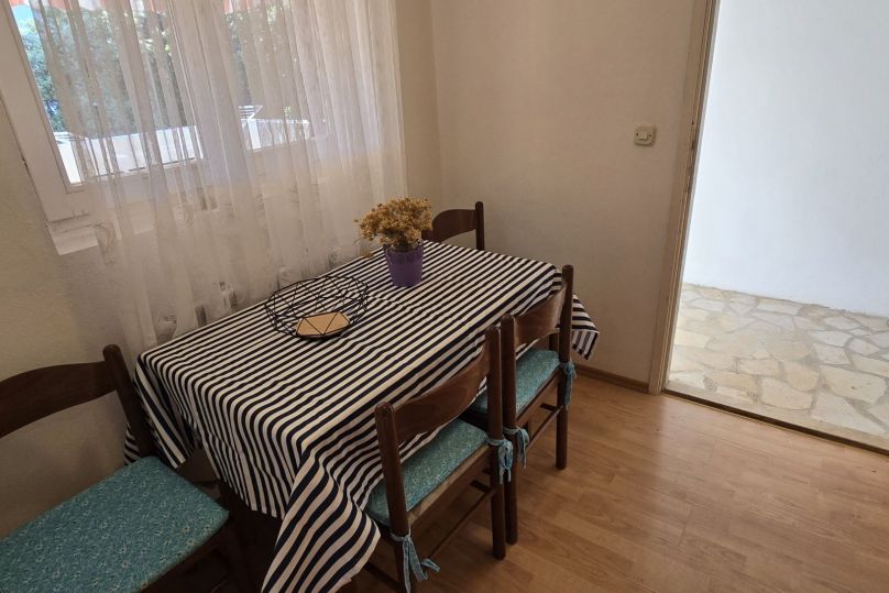 Die Wohnung befindet sich im ersten Stock und verfügt über 1 Schlafzimmer mit Doppelbett + 1 Einzelbett, Küche, Badezimmer mit Dusche, Terrasse vor der Wohnung, Klimaanlage, TV/SAT, WLAN, Parkplatz. Die Wohnung ist für 2 +1 Personen. Es kann über den YouTube-Link angesehen werden: https://www.youtube.com/watch?v=mdJqkfA9DQs&t=20s