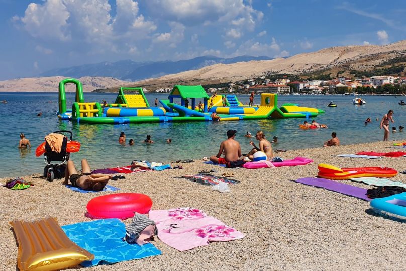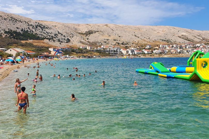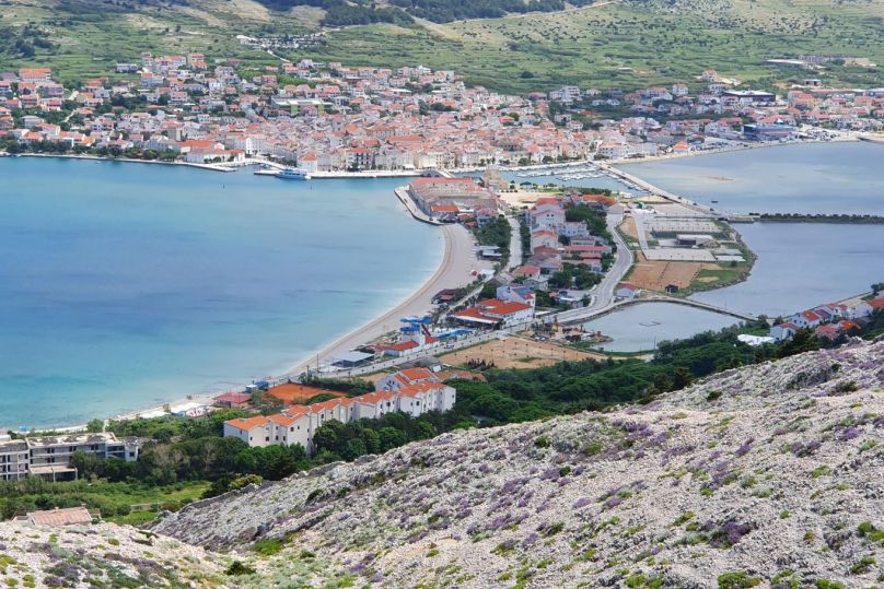 Der größte Sandstrand in unmittelbarer Nähe des alten Stadtzentrums heißt Prosika. In den Lagunen von Pag strecken sich 27 Kilometer von Sand-, Kies- und Steinstränden, von denen Zrće, Janjeće vode, Beritnica, Sveti duh, Sveti Marko, Dubrava, Bošana, Caska, Ručica, Slana, Malin, Veliki Zaton, Bijele Stijene, Veli Bok, Mali Bok und Kotica die bekanntesten sind.