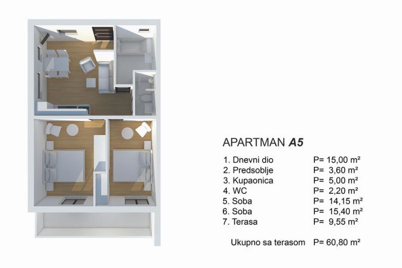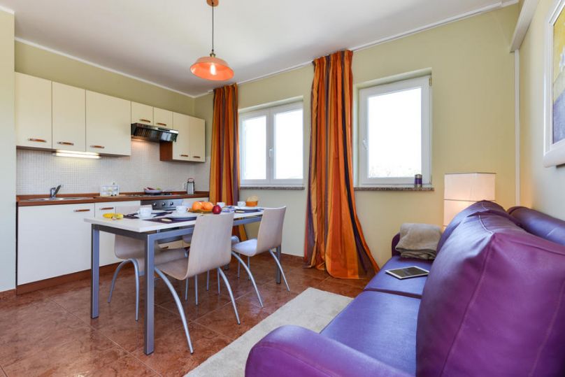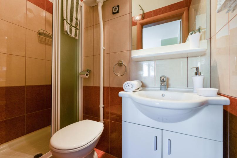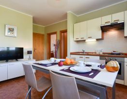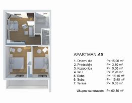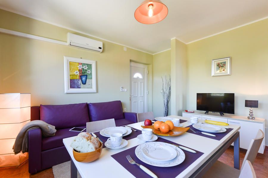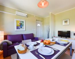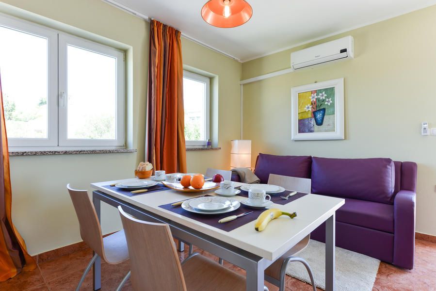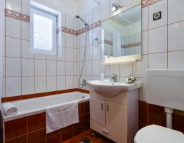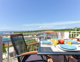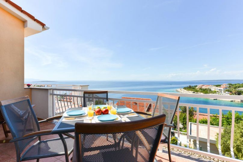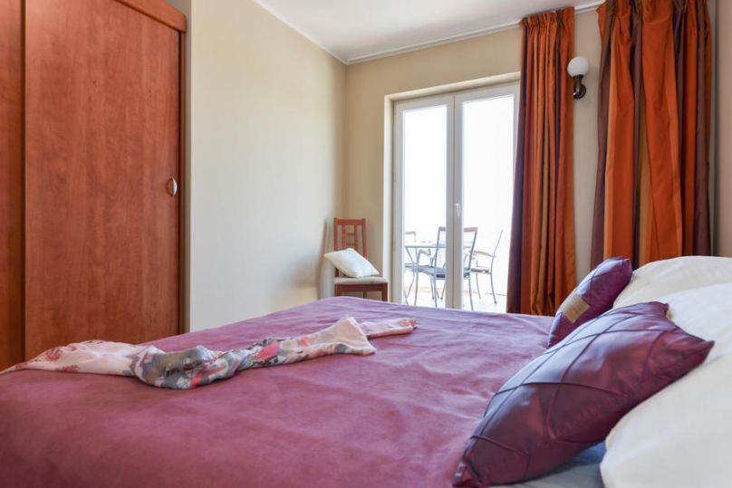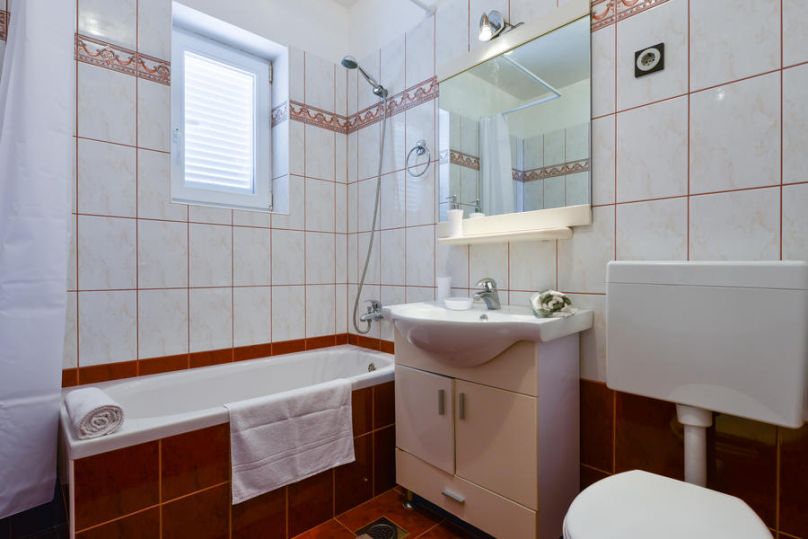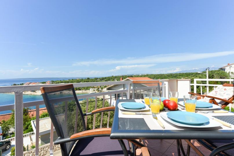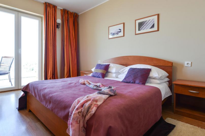 Das Apartment befindet sich auf der zweiten Etage und verfügt über eine Gesamtfläche von 51 m². Es ist ideal für vier Personen eingerichtet. Das Wohnzimmer hat ein modernes Schlafsofa für zwei zusätzliche Personen. Das Appartement hat sowohl eine schöne Terrasse mit Panoramablick aufs Meer und die umliegenden Inseln Cres, Rab und Lošinj. Das Apartment hat zwei geräumige Schlafzimmer mit Doppelbetten und Ausgang auf die große Terrasse, eine moderne Küche, ein Wohnzimmer und zwei Badezimmer, das eine mit Dusche und das andere mit Badewanne. Das Apartment ist voll ausgestattet mit Küchenutensilien, Geschirr und anderen Küchengeräten, Bettwäschen, Handtüchern, Geschirrtüchern, Kaffeemaschine und Wasserkocher. Das Apartment hat auch eine Klimaanlage, Satellitenfernsehen und ein kostenfreies und gut abgedecktes Wi-Fi.
