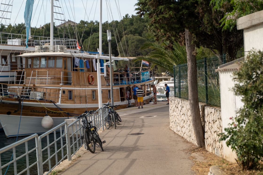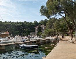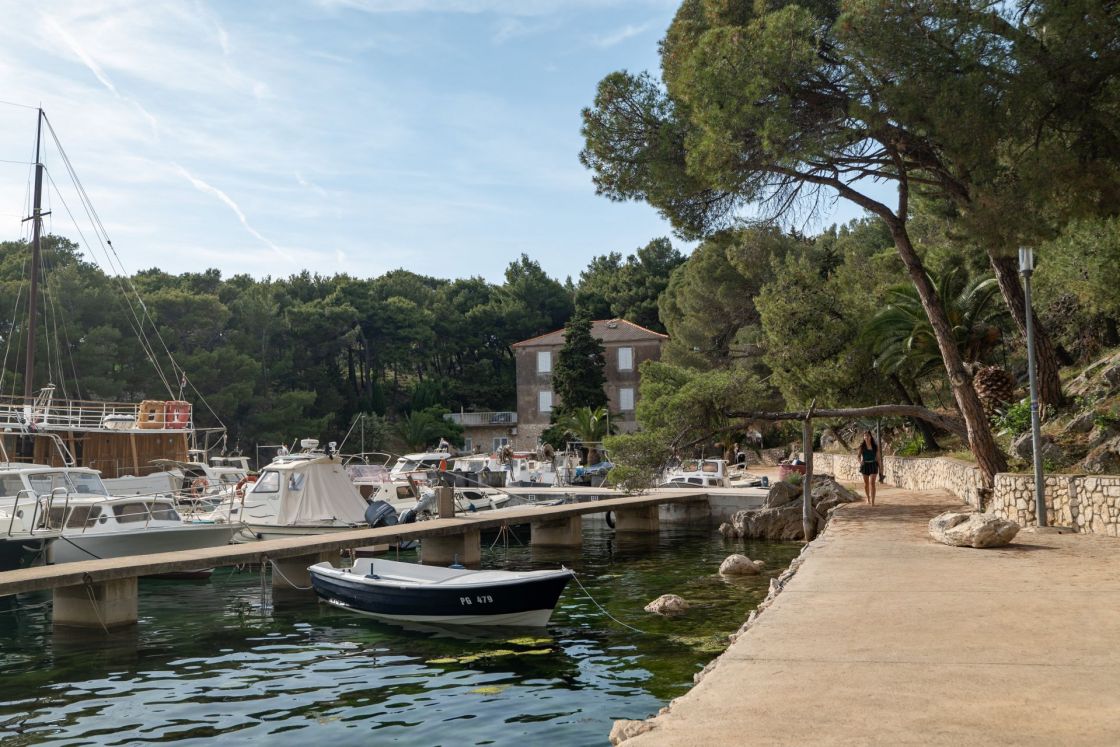 Der weiße Turm der Kirche Gospe Snježne dominiert die Landschaft. Aber Porat, ein sympatischer kleiner Hafen, hat seine eigene Anziehungskraft und ist mit Kieferwäldern und den verschiedensten mediterranen Pflanzen umgeben.