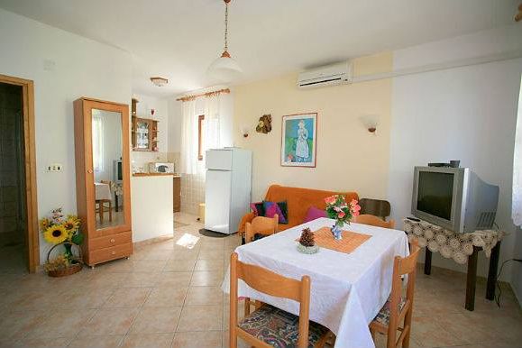 >Apartman kann 4 Personen beherbergen. Es besteht aus zwei Schlafzimmer, Wohnzimmer, Bad, Küche und Balkon. Das Angebot umfasst eine Klimaanlage, Wi-Fi, einen Grill hinter dem Haus, Parkplätze und einen privaten Strand und Liegeplatz.